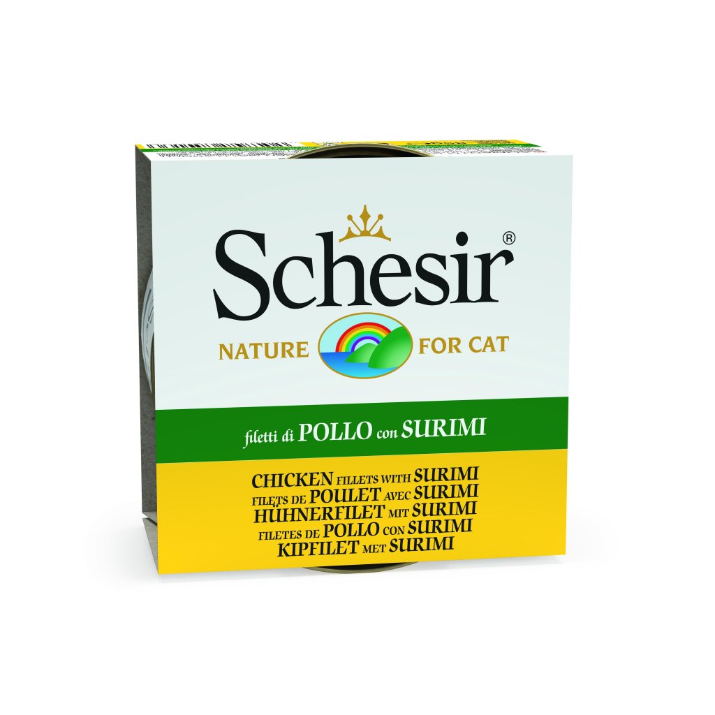 Schesir 041全天然雞肉絲蟹肉飯貓罐頭85g