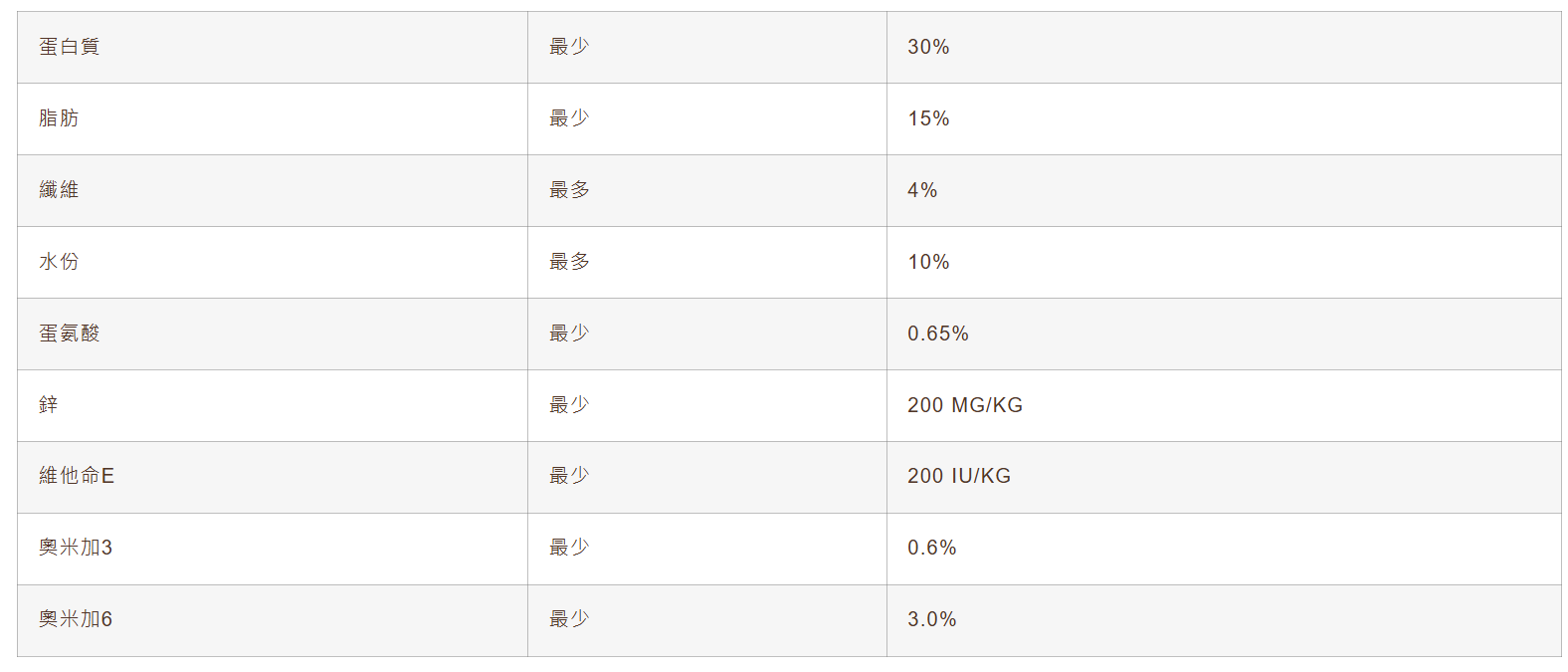 營養分析: