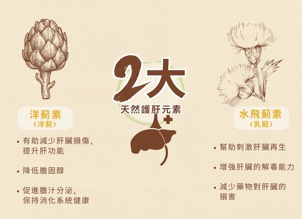 | 洋薊萃取物 (洋薊素) | 具有抗氧化及保護肝臟之效,有助肝臟代謝病毒 |