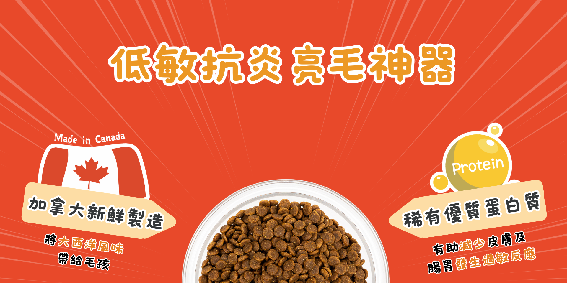 蛋白質含量高且脂肪含量低,非常適合有過敏問題的貓咪。