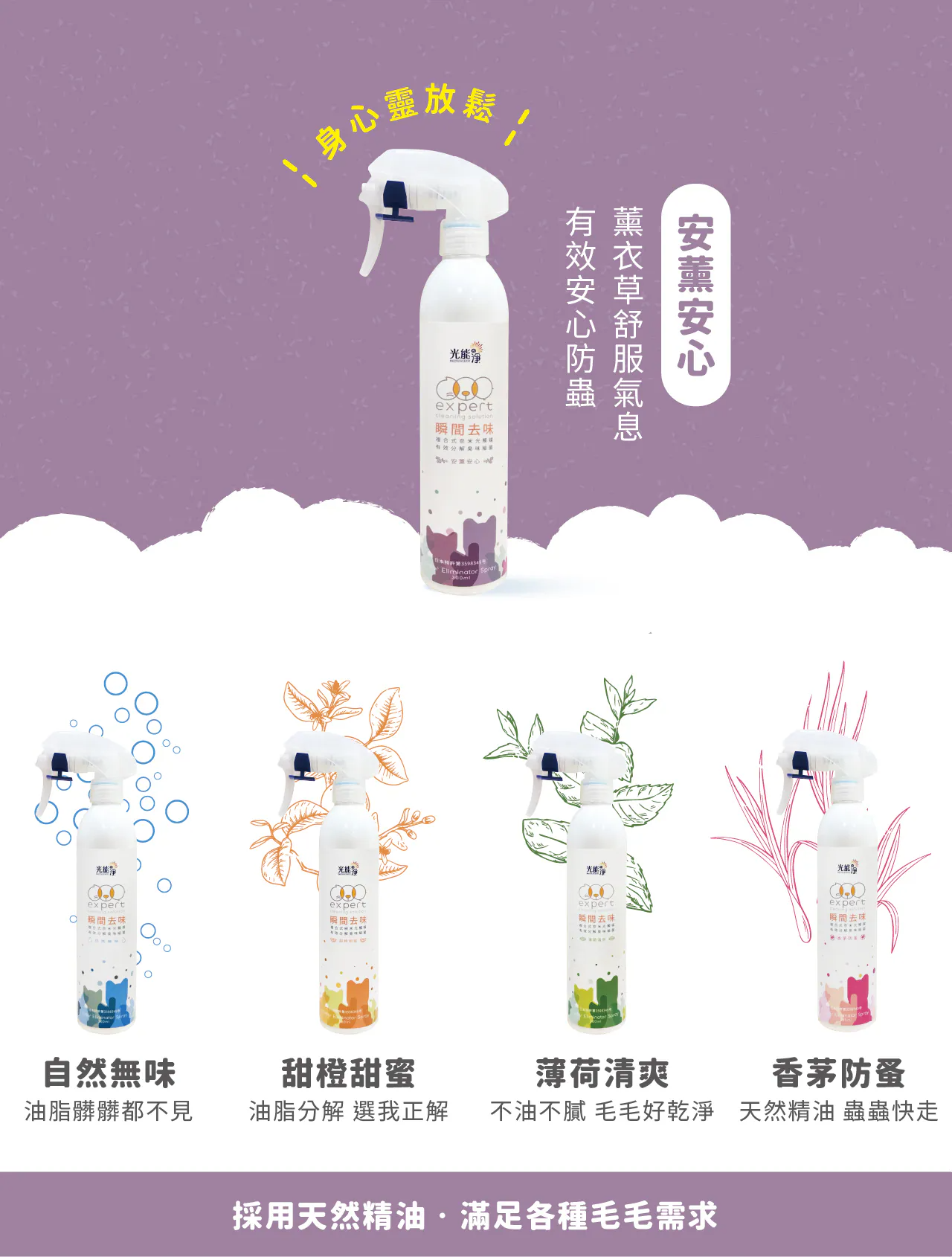 光能淨|毛毛專用!瞬間去味噴劑300ml-安心薰衣草