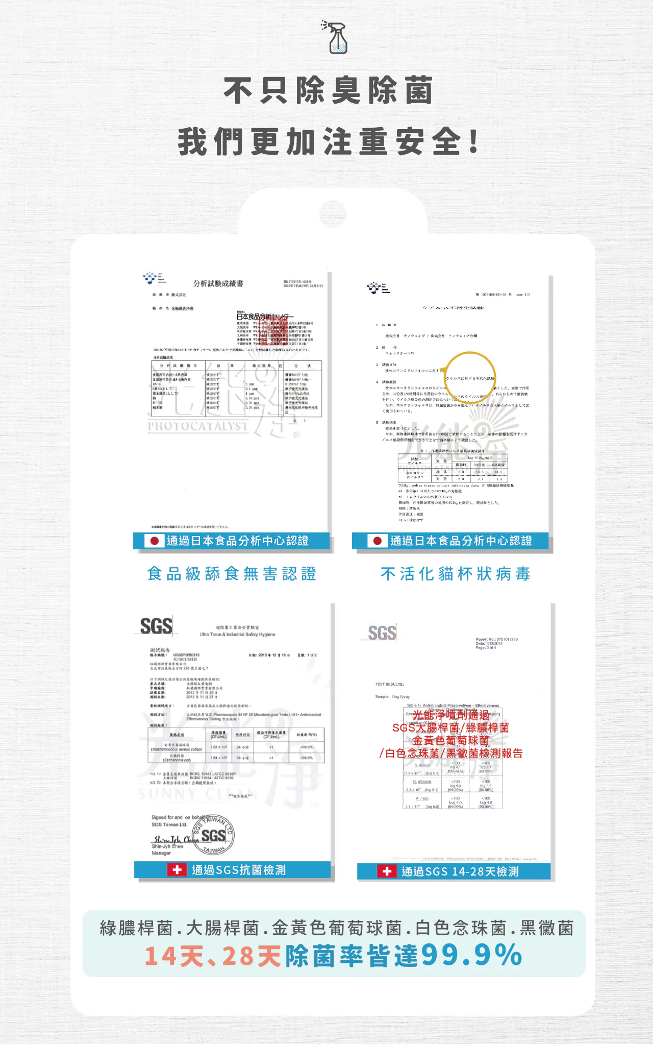 ►噴灑後瞬間去味,99.9%除菌
