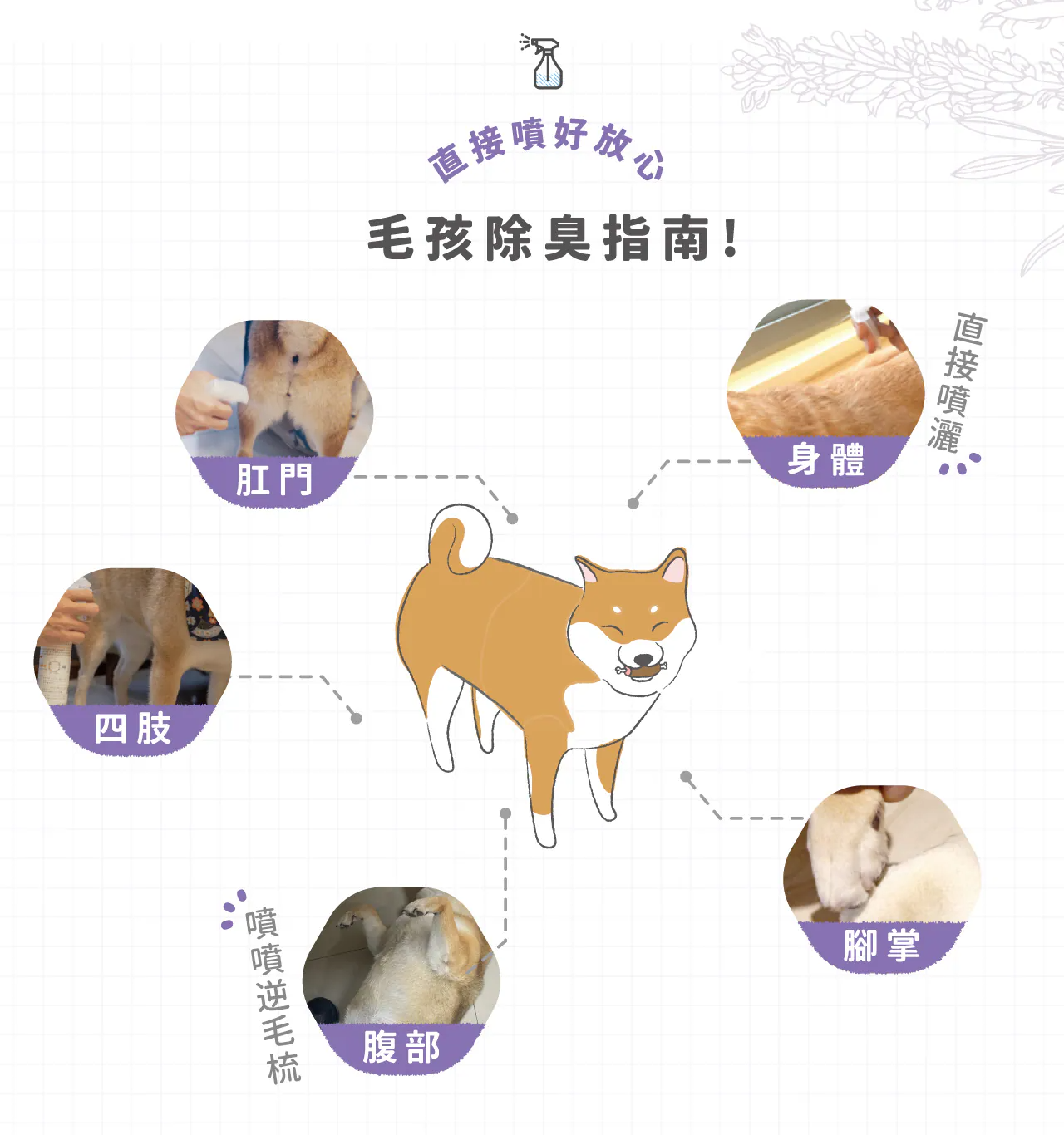 ►可直接噴灑於狗狗身上,舔食無害