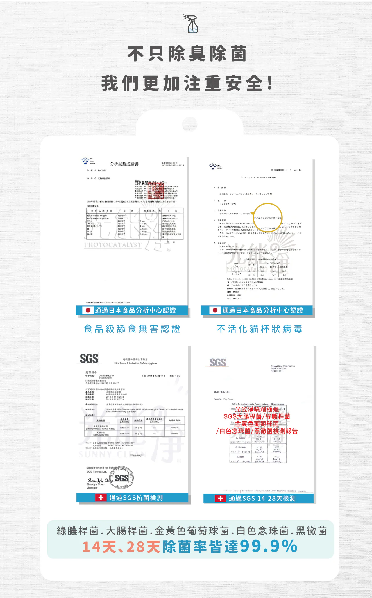 成分:可視光光觸媒中性水溶液、檸檬酸、中性純淨水、天然精油薄荷