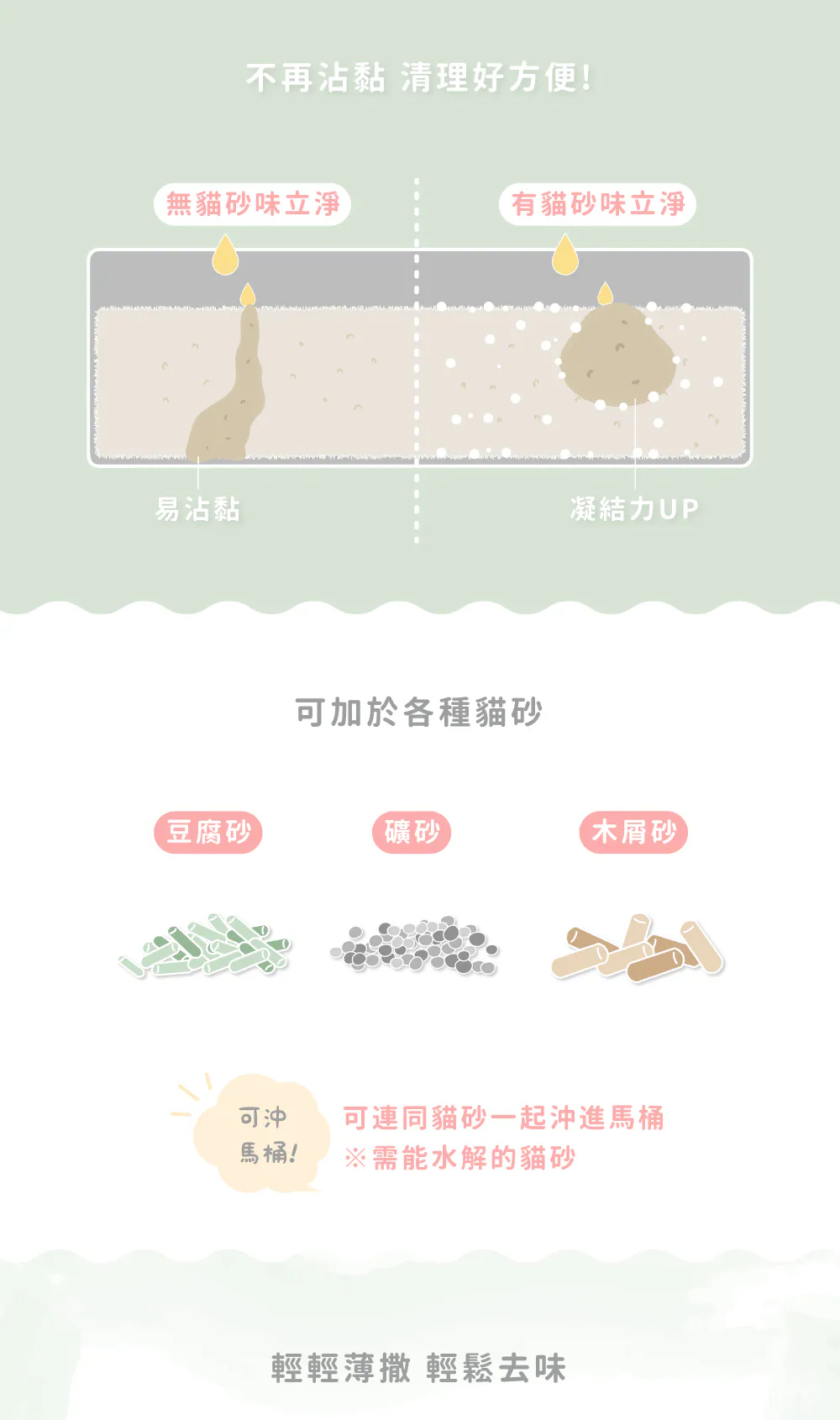 ►增加一般貓砂凝結力