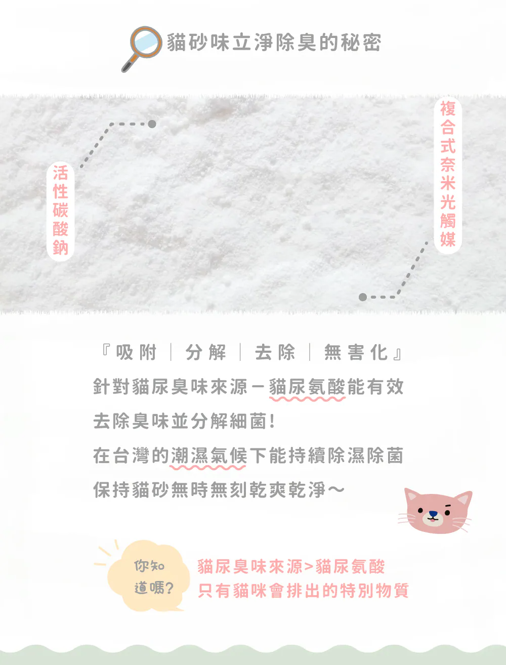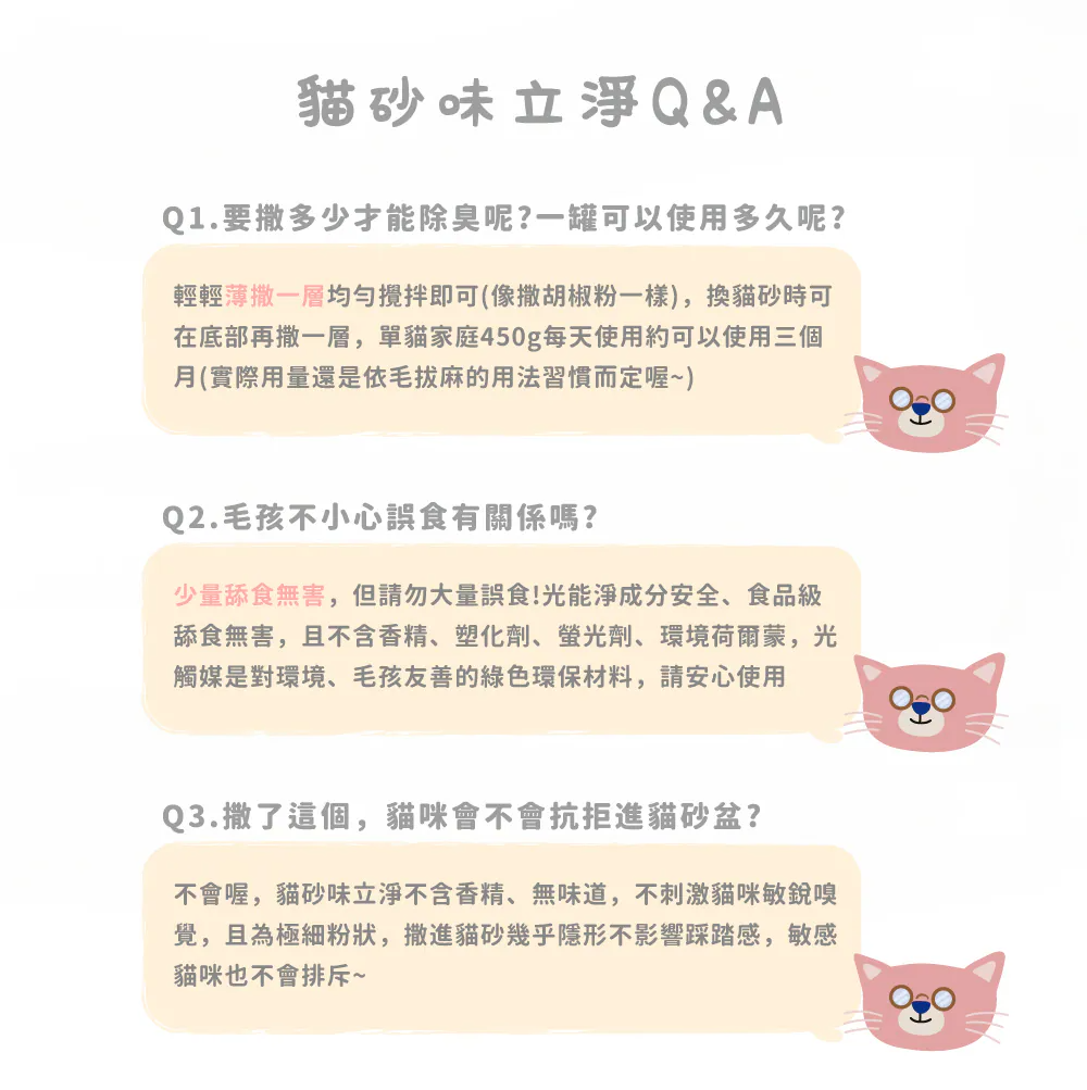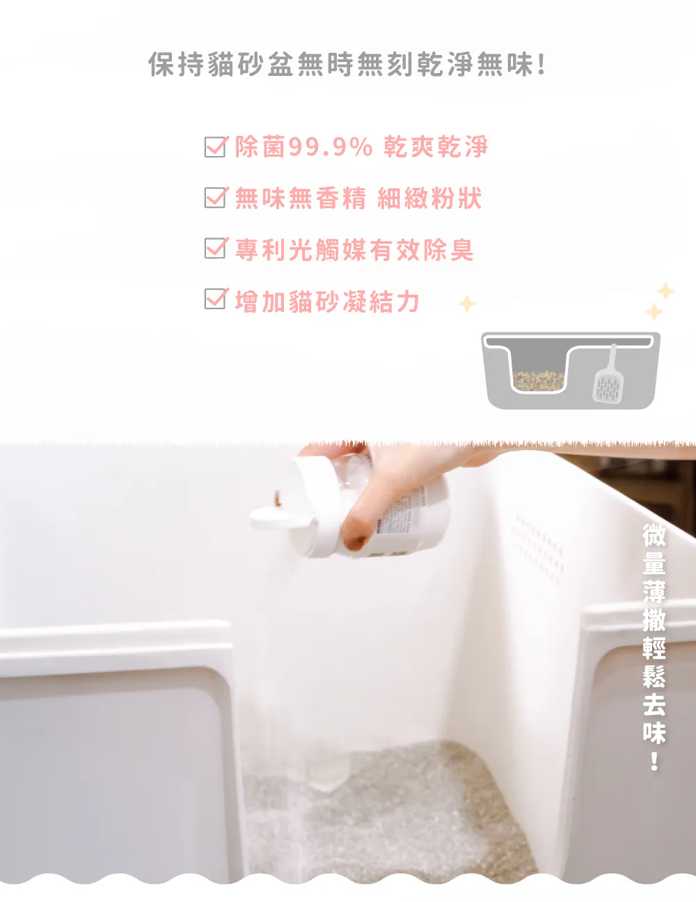 ►同時具備除臭、除菌、減少貓砂用量等多種功能