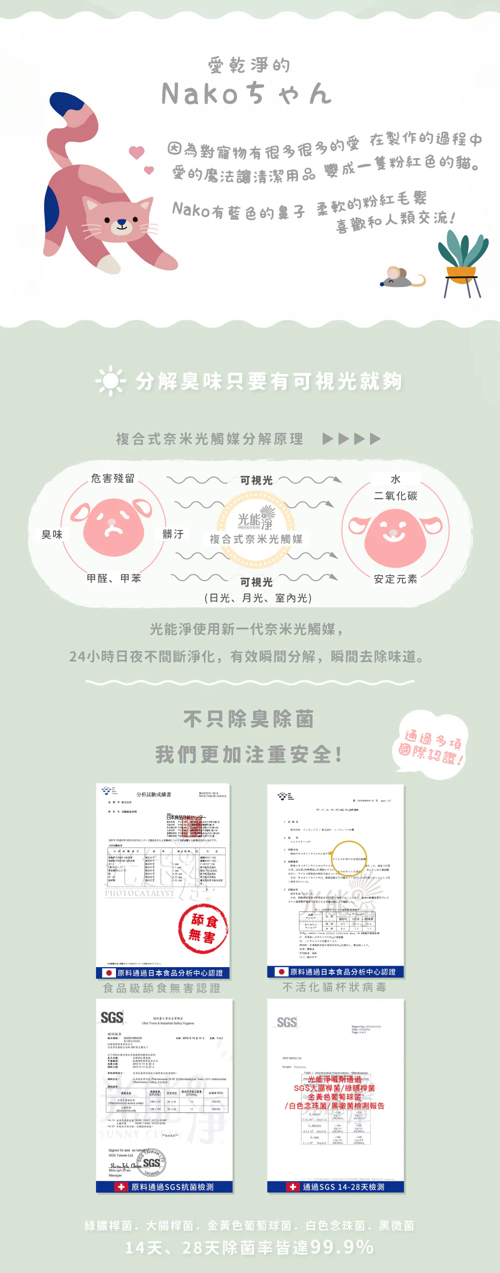 成分:奈米光觸媒水溶液、活性碳酸鈉、檸檬酸