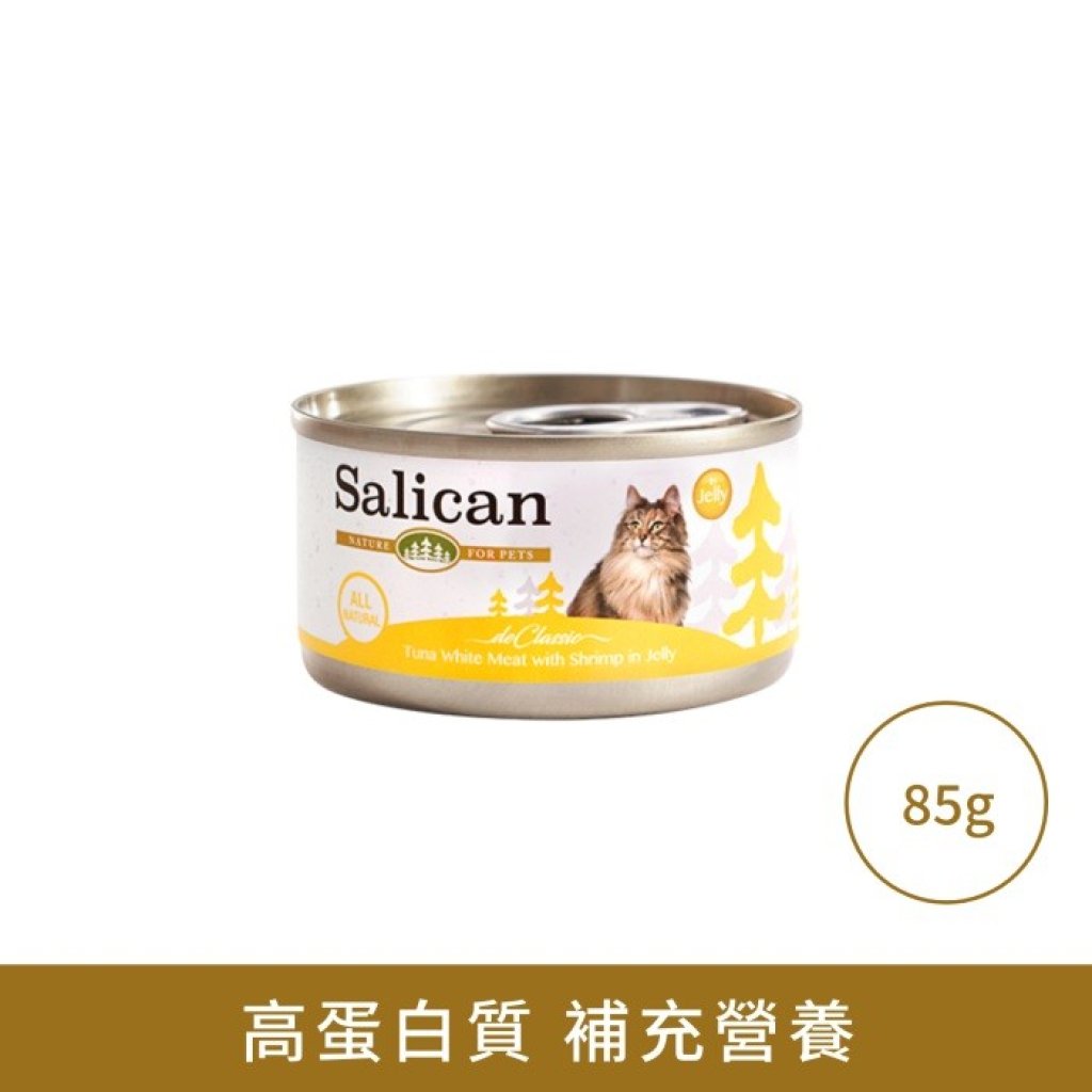 Salican 白肉吞拿魚鮮蝦啫喱貓罐頭85G