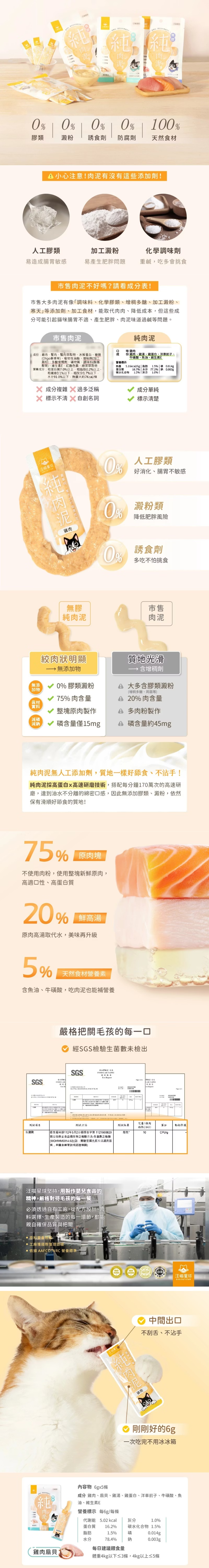 汪喵星球無膠純肉泥 - 雞肉扇貝 6g x 5條