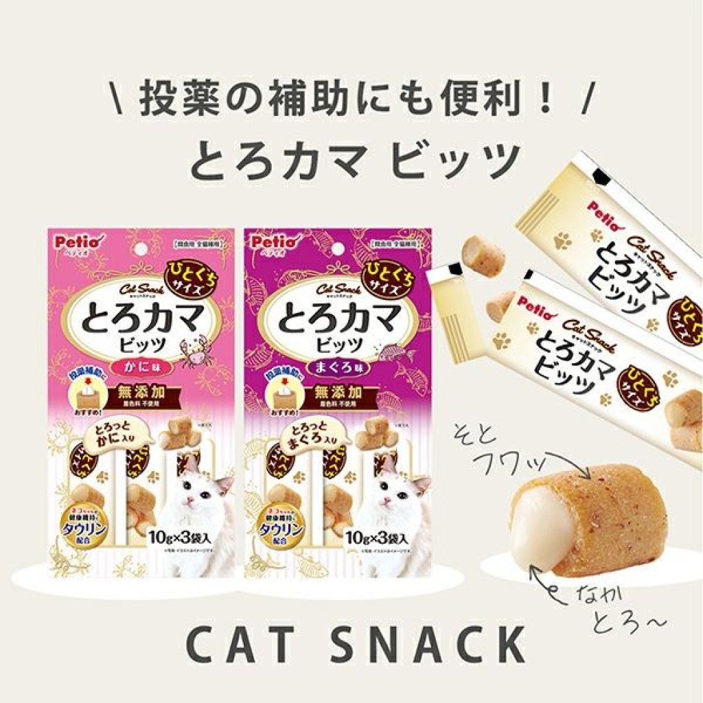 這款 「とろカマ ビッツ」 將優質雞里肌與鮮香螃蟹精華完美結合,打造出外嫩內流心的極致口感,讓貓咪一試就愛上!