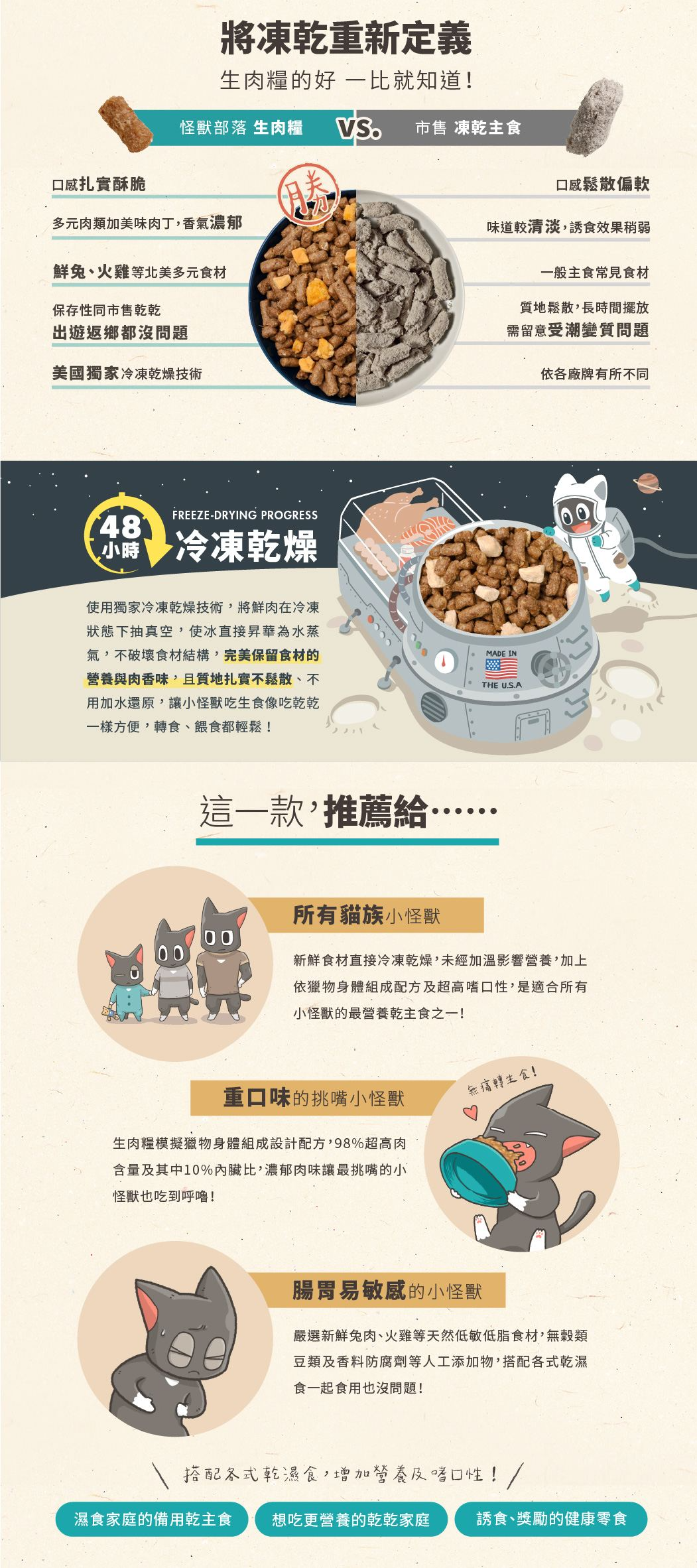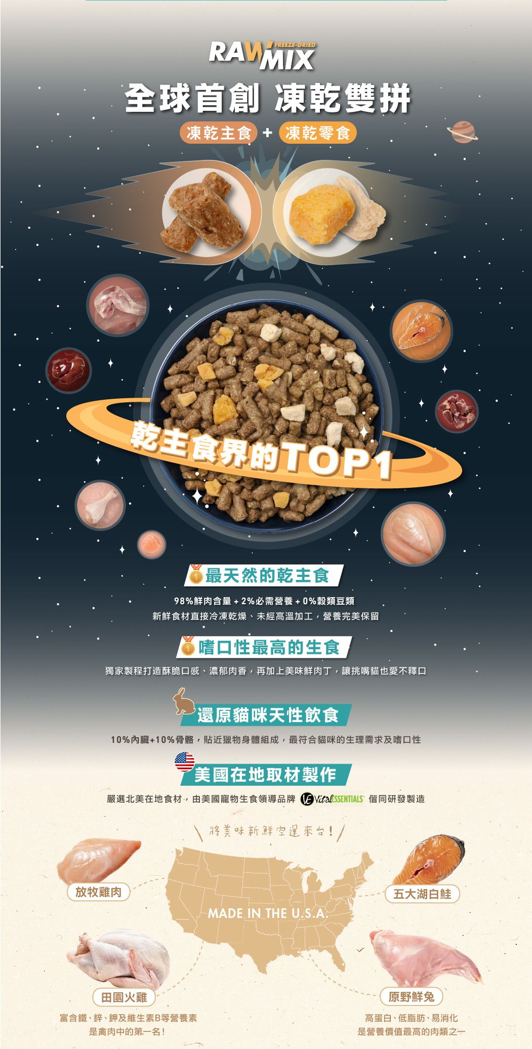 怪獸部落 貓用美國太空冷凍乾燥生肉糧- 原野鮮兔佐嫩雞 140g