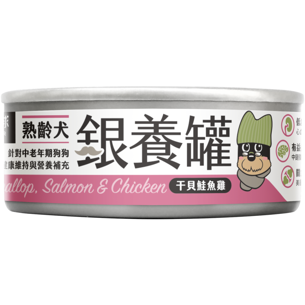 汪喵星球 熟齡犬低鈉無膠銀養主食罐 - 干貝鮭魚雞80g