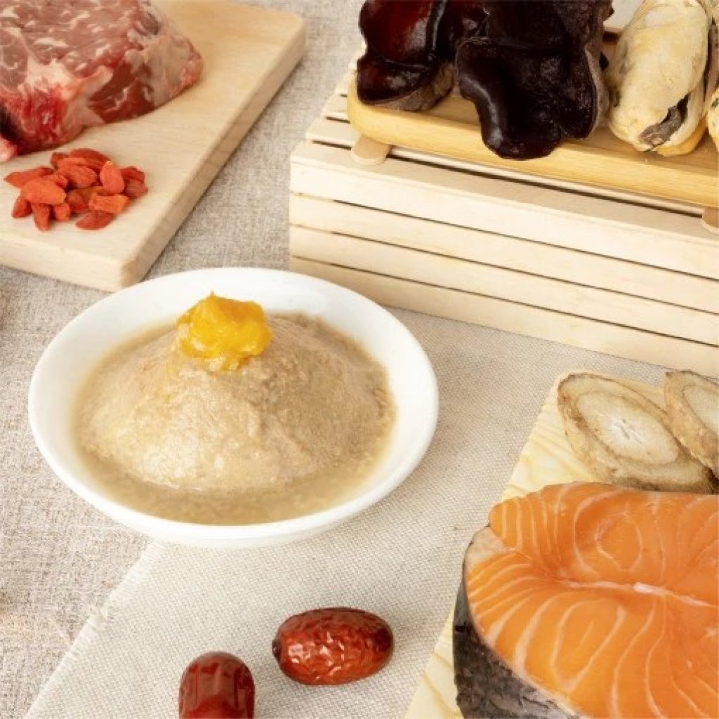 主頁 汪喵星球 熟齡犬低鈉無膠銀養主食罐 - 干貝鮭魚雞80g