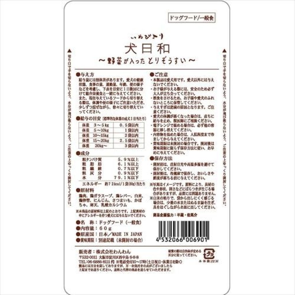 犬日和 犬用蔬菜肉粥鮮味包60g