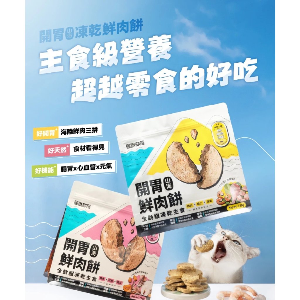 顛覆你對貓咪主食的概念!在乾糧和貓罐罐之外,現在怪獸部落更推出了開胃山海鮮肉餅,為貓咪們帶來前所未有的肉肉主食系列!每口真材實肉,天然酥脆,讓貓咪愛不釋口!