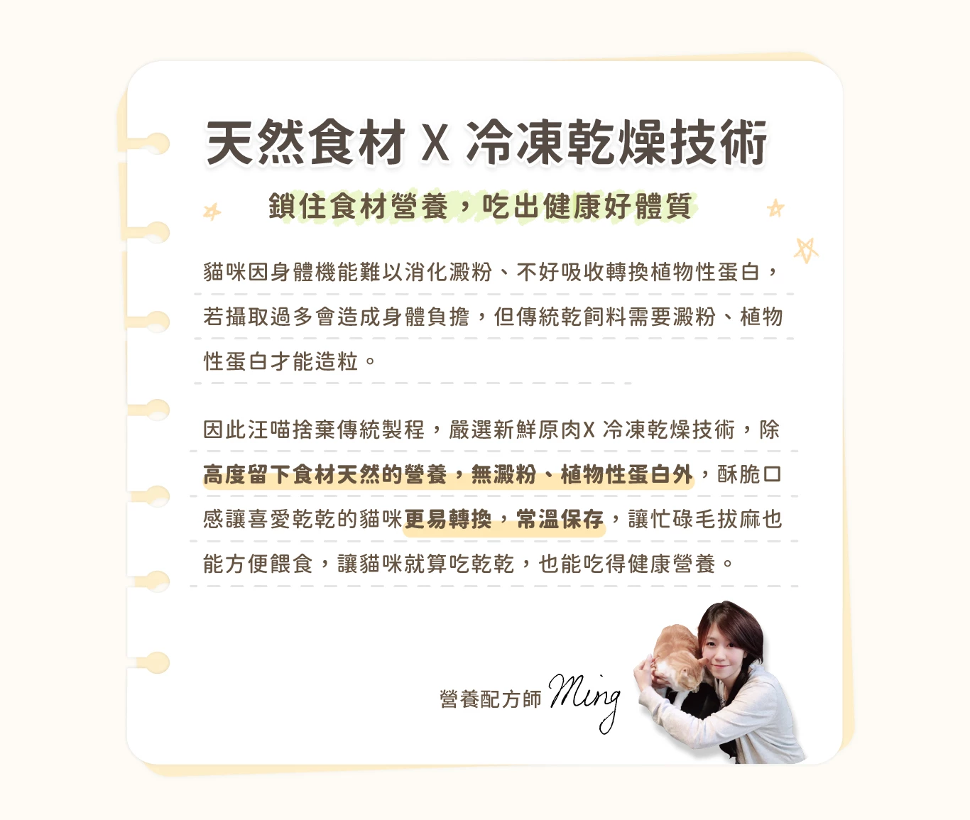 汪喵星球 天然低敏凍乾主食餐(小方粒) 安心雞500g