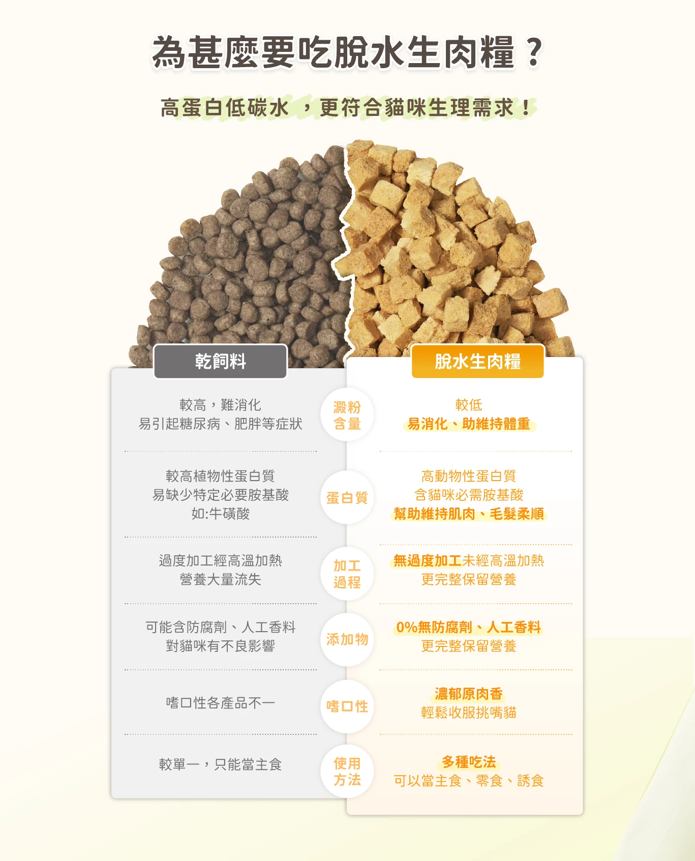 汪喵星球 貓咪脫水生肉糧 (小方粒型) 安心雞 500g