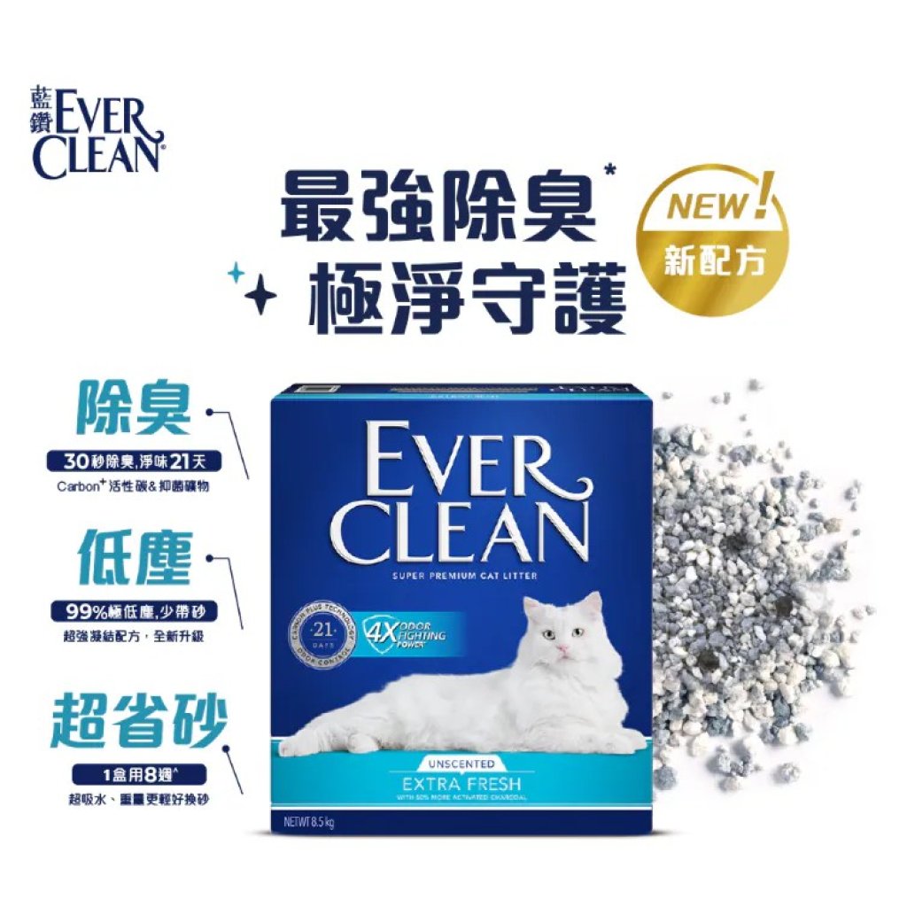 EverClean 藍鑽 藍標 • 速凝 4X除臭皇貓砂(無香味) 8.5kg