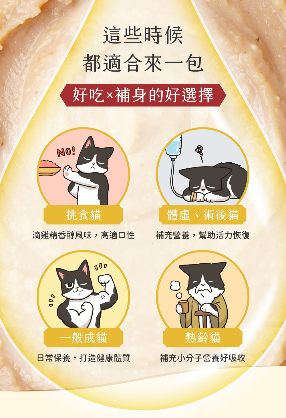 幼貓、老貓適合吃滴雞精/滴魚精餐包嗎?