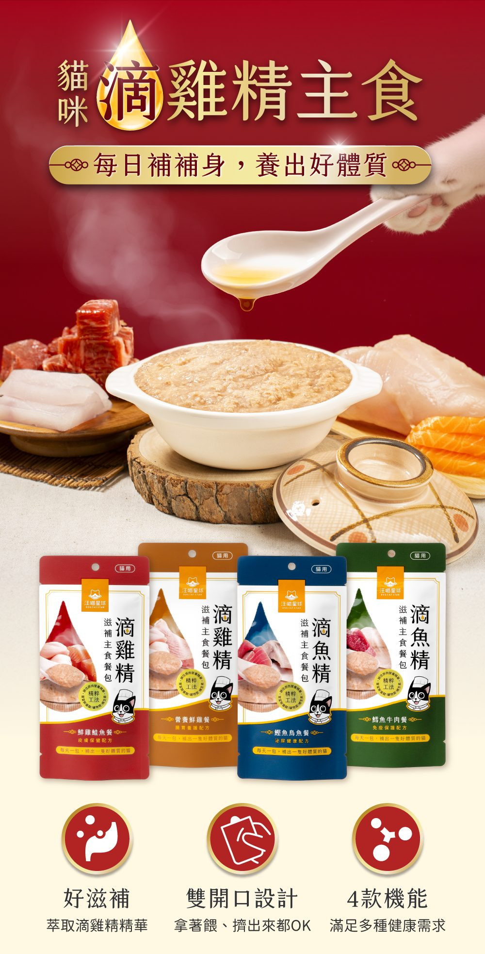 滴雞精/滴魚精餐包是主食還是副食嗎?滴雞精比較營養還是滴魚精?餐包可以加水餵食嗎?汪喵餐包&罐頭怎麼選?