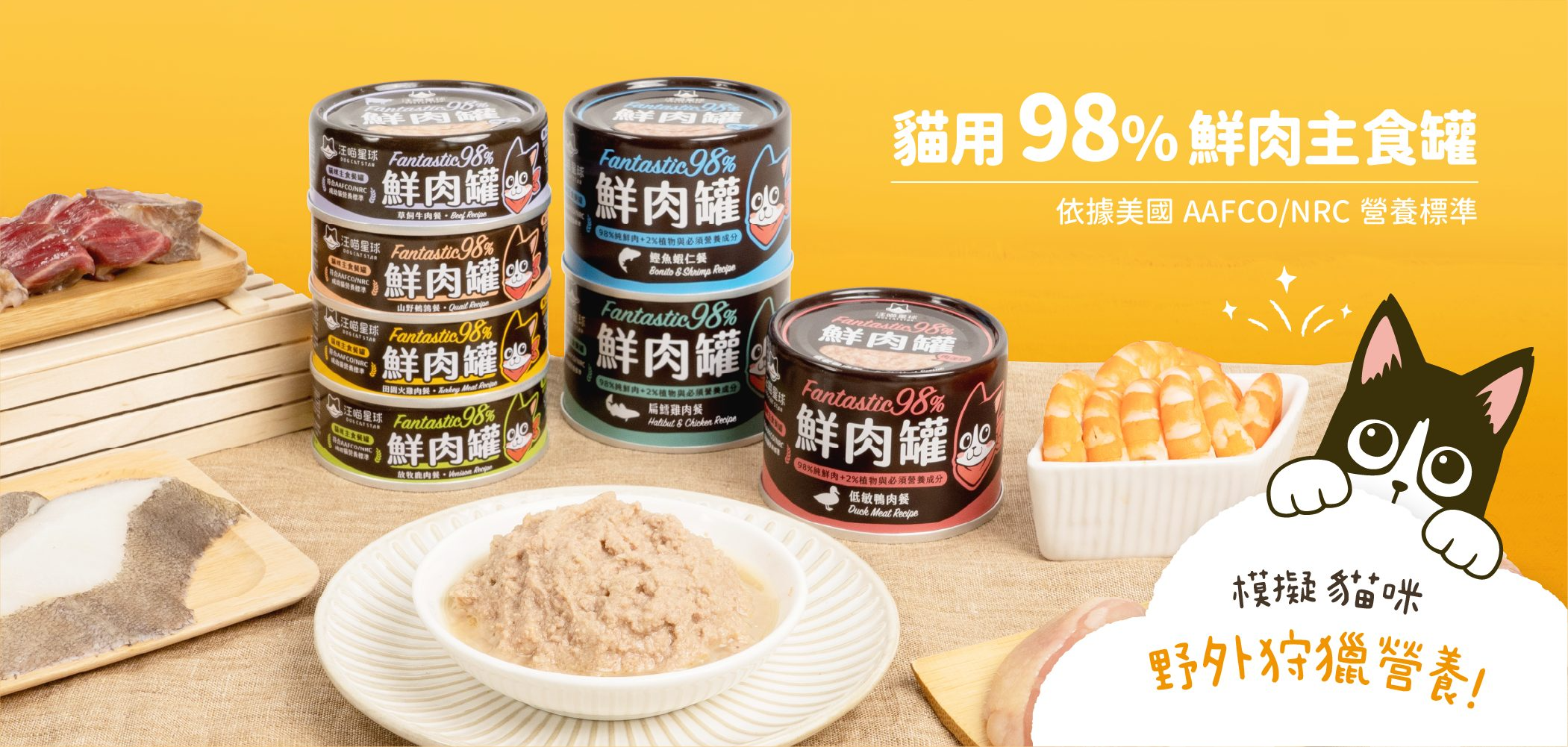 汪喵星球 貓咪98%鮮肉無膠主食貓罐 低敏鴨肉 80g