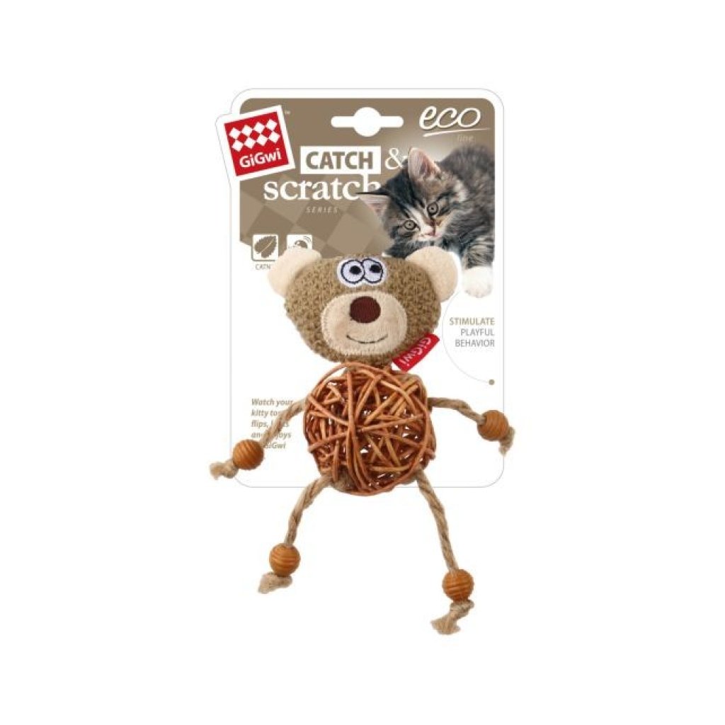 GiGwi Catch & Scratch 藤球鈴鐺 啡色小熊
